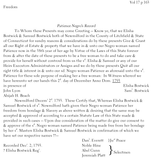 24 emancipation records transcribed from New Milford, CT, town clerk records (1756 - 1810) An 8 1/2 x 11, 30-page booklet |